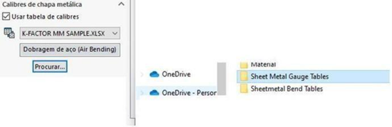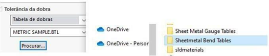Esta será a pasta onde o seu desenho irá procurar as tabelas de calibre para dobra: