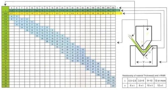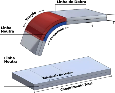 Essa razão varia em função do processo de dobra que o material irá sofrer e deve ser testada antes da fabricação de qualquer peça.
