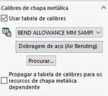 Entenda mais detalhes a seguir no tutorial sobre tabelas de sheet metal.