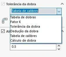 Já o Sheetmetal Bend Tables, é usado no campo “tolerância de dobra” e contém tolerâncias calculadas para cada empresa, com o objetivo de determinar o sobrematerial com o qual será cortada a chapa.